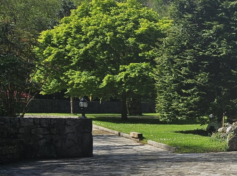 Parcela de 7.000 m², completamente cerrada con muro de piedra y portones de forja.
