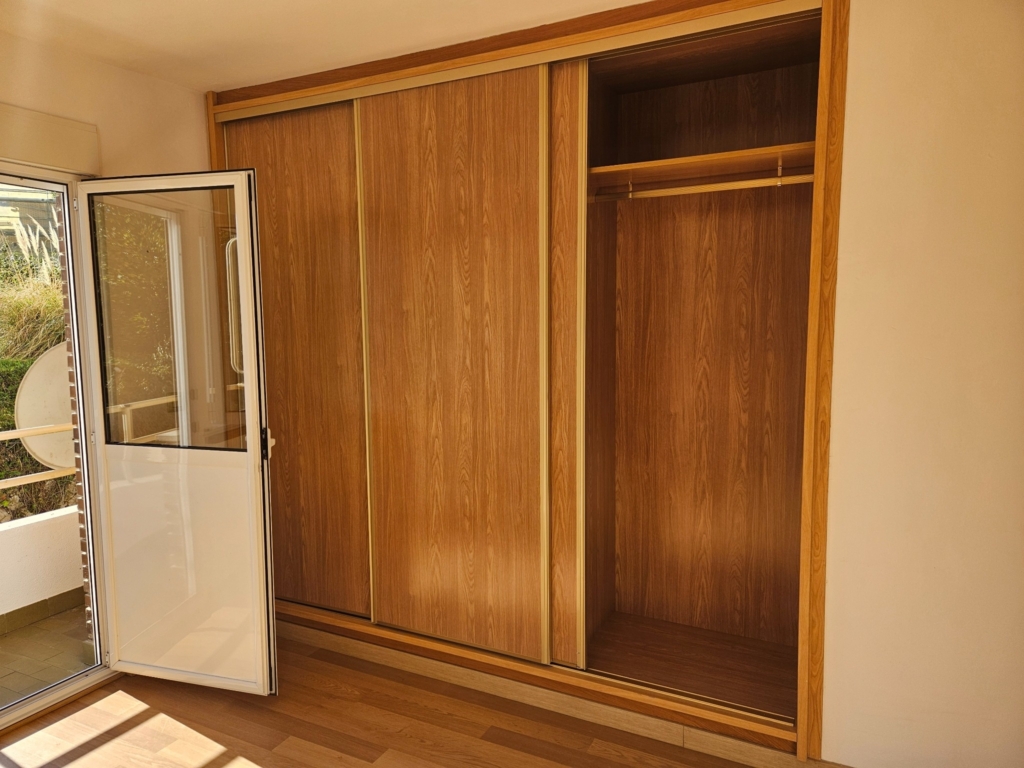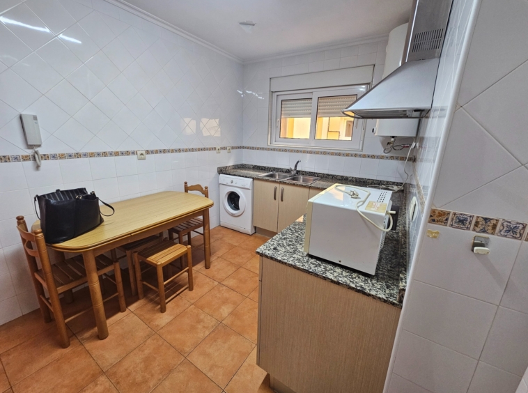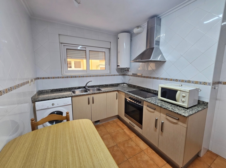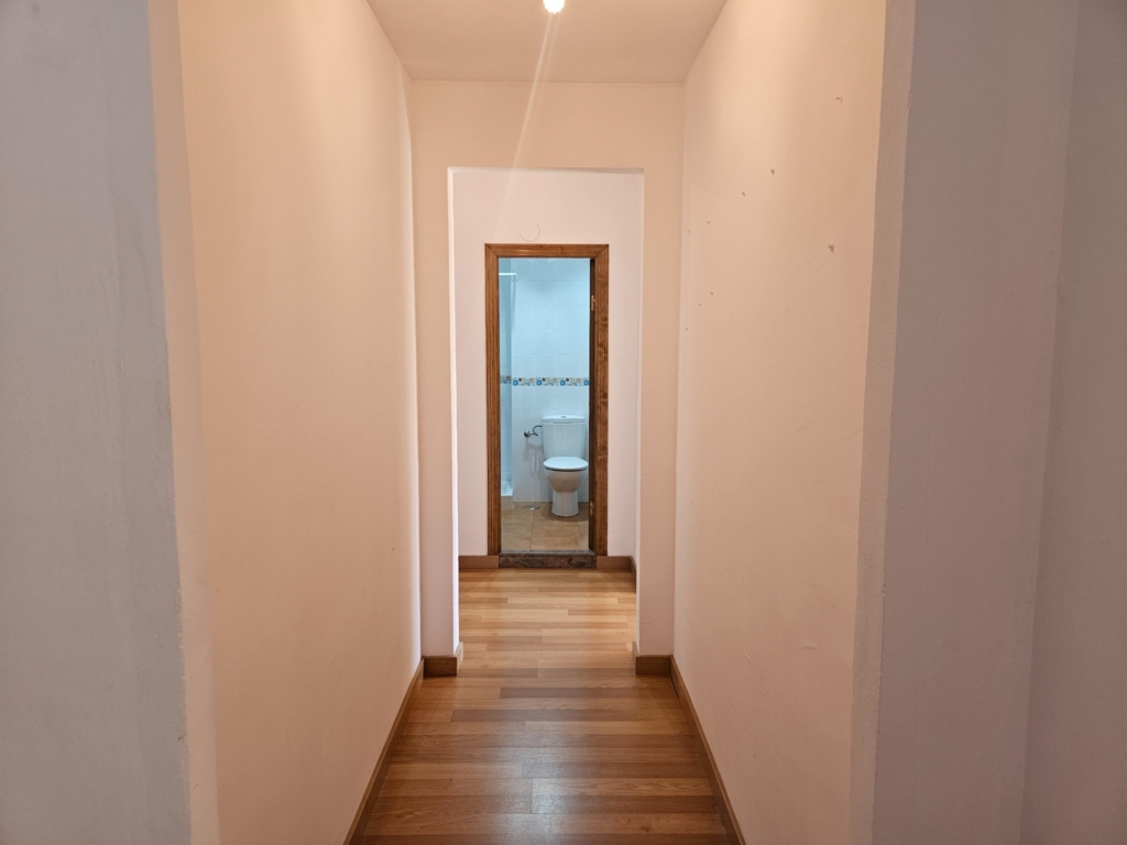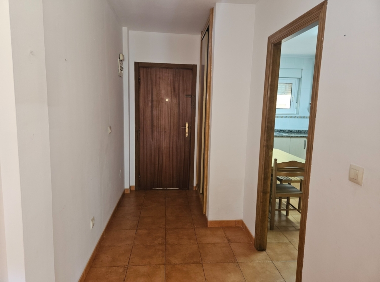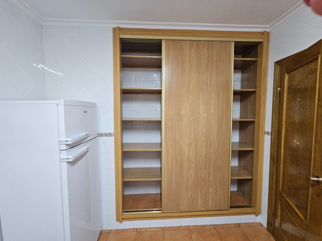 Hall de entrada que da paso a una amplia cocina, equipada y con un gran armario empotrado perfecto como zona de almacenaje.