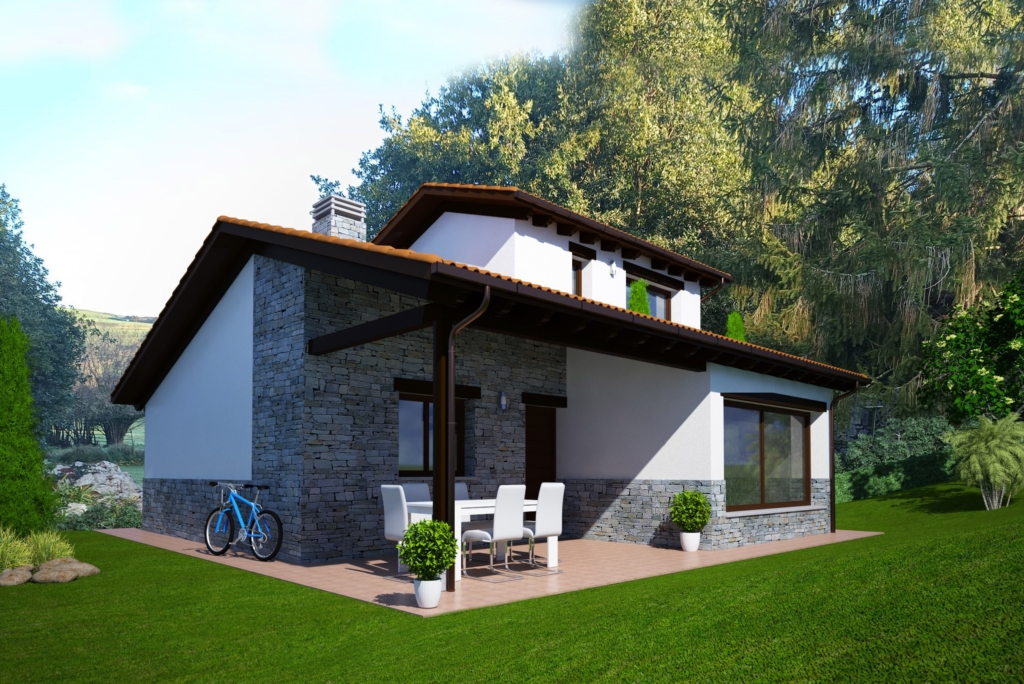 Planta baja: porche con acceso al salón-cocina-comedor, pasillo distribuidor, 2 dormitorios, 1 baño completo y escalera de acceso.